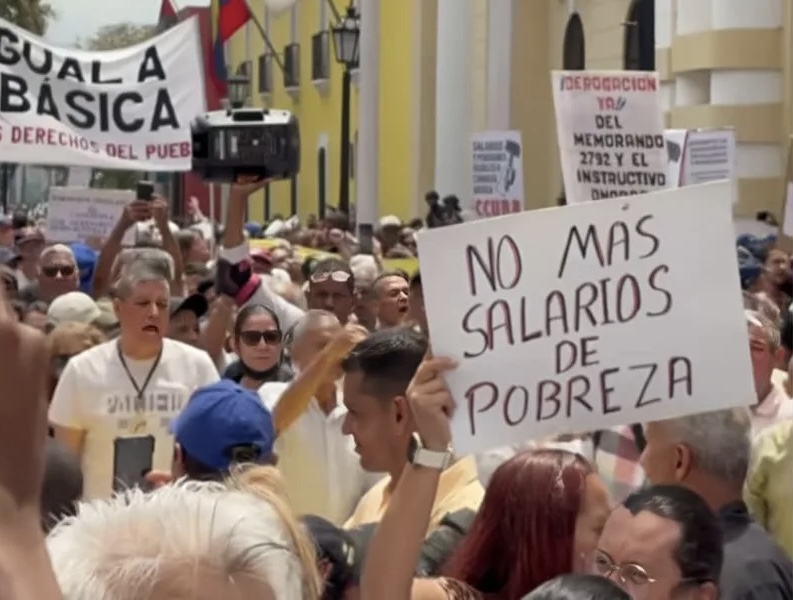 The protests reflect the dramatic deterioration of Venezuela’s wage structure after years of economic collapse and currency devaluation. The statutory minimum salary remains fixed at 130 bolívares per month, unchanged since March 2022 and now equivalent to less than $0.30, effectively rendering it symbolic. While many public-sector workers receive additional income through government bonuses, these payments do not count toward pensions or other labor benefits. Average public-sector income is estimated at roughly $160 per month, while private-sector wages average about $237, according to independent economic estimates.