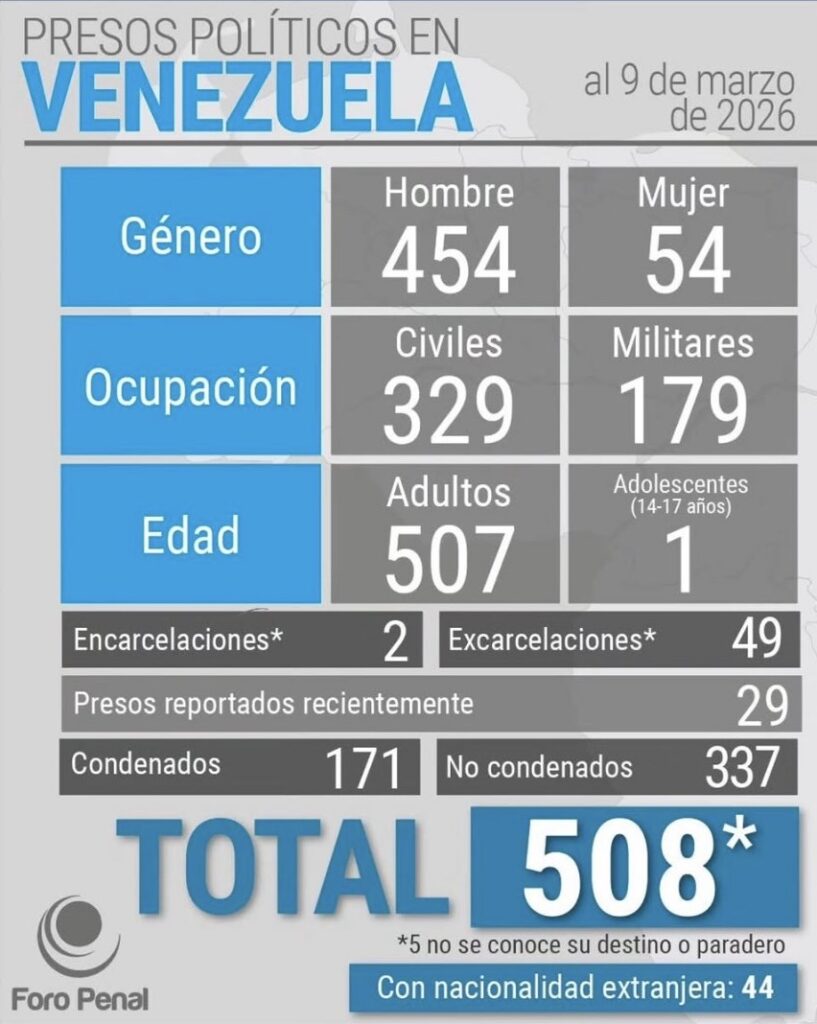 According to monitoring by Foro Penal, at least 670 political prisoners have been released since January 8, while approximately 500 political prisoners remain detained, including civilians, activists, and military personnel.